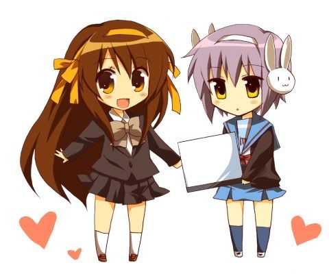 Que tal compañeros de batalla, esta vez ( y casi como siempre) de oscioso por la red me encontre con el nuevo ending, de la MUY nueva temporada de Haruhi Susumiya, como sabran (o no :D) con la retransmicion de Haruhi Susumiya, se estaran intercalando nuevos capitulos a la ya de por si muy complicada trama, estos capitulos son parte del orden en el q se transmiten en Jpon, pero la verdad a estas alturas de la transmicion, la verdada esta muy dificil predecir si existiran otros "ordenes" para ver los capitulos. Bueno ya basta de BLABLABLA aqui les dejo el link: